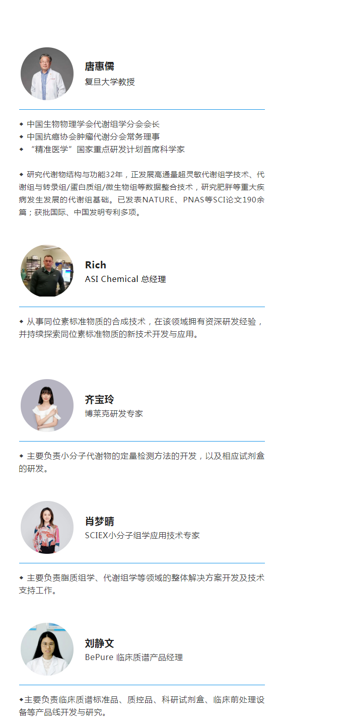 期沙龍我們將于2022年6月22日騰訊會議bilibili嗶哩嗶哩上舉辦,由北京曼哈格生物科技有限公司(曼哈格,BePure)博萊克(科技)武漢有限公司(博萊克,SMI)聯合主辦,邀請到的主咖嘉賓為復旦大學唐惠儒教授,他從事代謝物結構功能及代謝組學研究30余年,現任中國生物物理學會代謝組學分會會長、中國生物物理學會理事、中國抗癌協會腫瘤代謝分會常務理事、中國營養學會基礎營養學分會委員等職務。