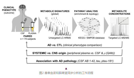 該綜述包括了15項不同的阿爾茨海默癥代謝組學研究,并且各自都使用了不同的體液樣本。通過比較從各種分離方法及質譜技術中所得到的發現,可以確定研究結果的一致性如何。通過多種體液之間的比較,不僅可以顯示出多個系統之間的相似性,還可以闡明不同體液之間的關系。該綜述整合討論了這些研究數據,并對幾個重要的代謝途徑進行了詳細分析。