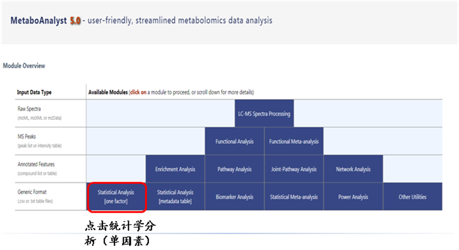 MetaboAnalyst是一個代謝組學數據分析的綜合平臺。當前的MetaboAnalyst (V5.0)支持原始MS光譜處理、綜合數據歸一化、統計分析、功能分析、薈萃分析以及與其他組學數據的綜合分析。