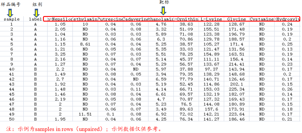 1)需要有樣本名和樣本分組信息,文件格式需為制表符分割的TXT文件或逗號分割的CSV文件。