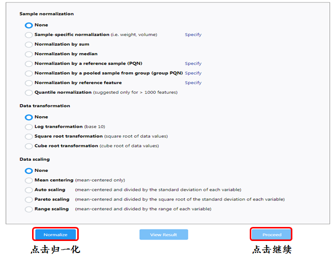 注意:軟件會默認將缺失值及零值替換為其對應變量的最小正值的1/5。