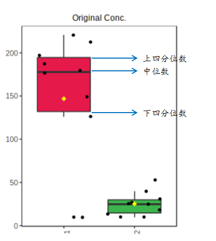 點擊火山圖中的點即可顯示原始濃度數據和數據歸一化處理后的箱形圖,可幫助快速識別異常值。