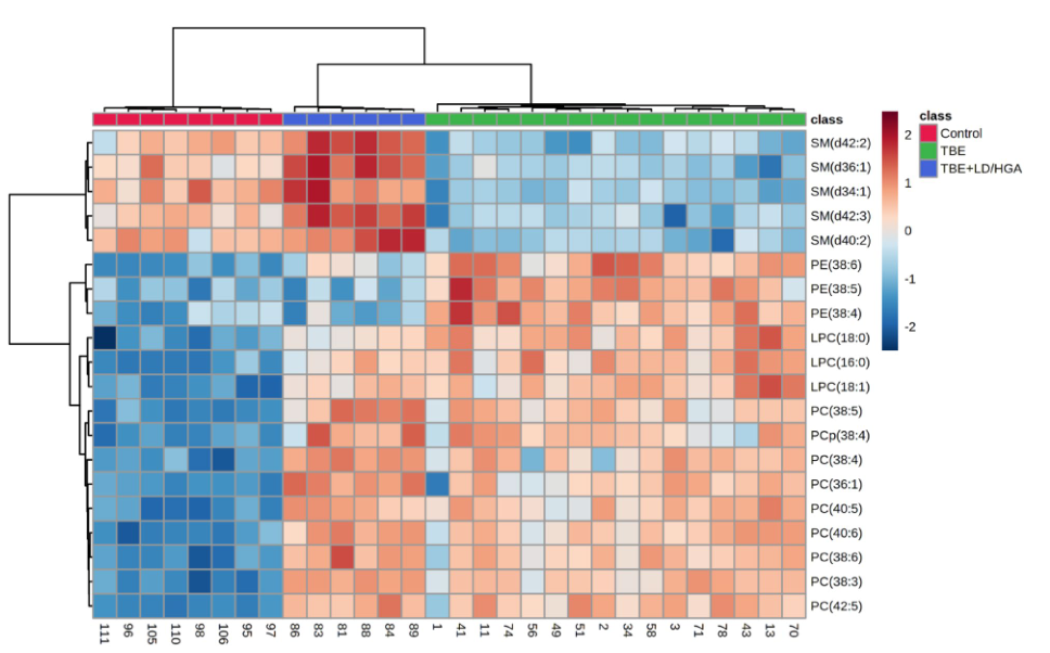 TBE患者和細菌共感染患者血漿中PL及CER含量的變化,決定了兩組患者之間的區別。這項研究的結果有助于更好地理解病毒和細菌共同感染導致的復雜病理機制,為區分蜱傳性腦炎患者與和細菌共感染患者提供重要的依據,也為開發有效藥物提供有效的幫助。