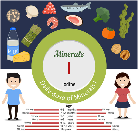 【過量】只有當碘攝入量>1.1mg/d才會發生慢性碘中毒。大多數人攝入過量碘的仍能維持正常的甲狀腺功能。有些人攝入過量碘,特別是那些患有碘缺乏的人,會出現甲狀腺功能亢進。碘中毒最終會導致高碘性甲狀腺腫、 甲狀腺功能減退或黏液性水腫。極大量的碘化物攝入可能會引起味覺異常、流涎、胃腸道刺激、痤瘡。經常接受大劑量含碘的放射性造影劑或藥物胺碘酮的患者需要監測甲狀腺功能。