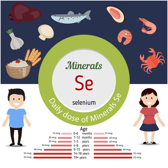 硒是谷胱甘肽過氧化物酶的一部分,參與來自不飽和脂肪酸的氫過氧化物代謝,硒也是甲狀腺激素脫碘酶的組成成分。一般來講,硒作為抗氧化劑和維生素E共同發揮作用。