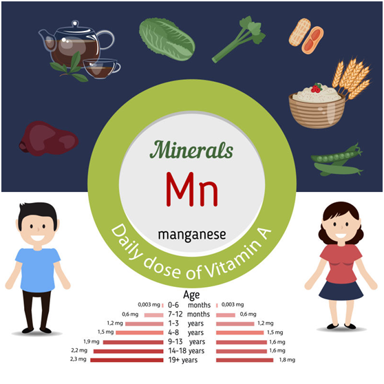 錳是機體骨骼構成所必需,也是幾種酶類的組成成分,包括特異性由錳激活的糖基轉化酶和磷酸烯醇式丙酮酸羧基激酶。