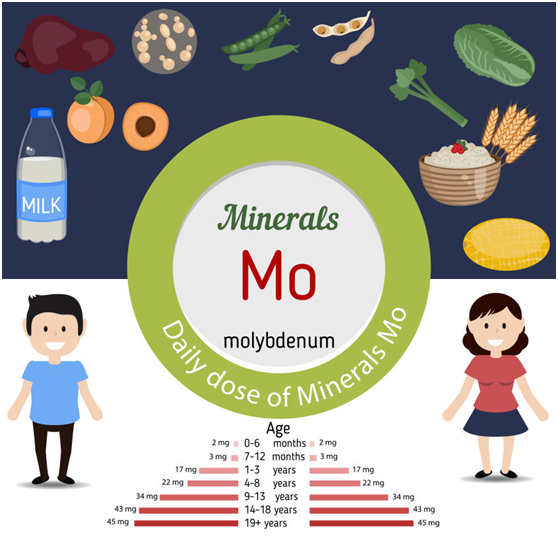 鉬是是某些輔酶的組成成分,為維持黃嘌呤氧化酶、亞硫酸鹽氧化酶和醛氧化酶的活性所必需。