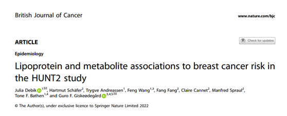挪威科技大學Guro Giskeødegård團隊于2022年8月在Nature子刊British Journal of Cancer上發(fā)表題為“Lipoprotein and metabolite associations to breast cancer risk in the HUNT2 study”的研究論文。通過Bruker IVDr檢測技術,分析HUNT研究中的前瞻性隊列,發(fā)現血清中幾種脂蛋白亞類與乳腺癌風險之間的關聯,揭示了病人在乳腺癌診斷前多年,內源性脂質途徑中的代謝就已經發(fā)生改變。原文鏈接:https://doi.org/10.1038/s41416-022-01924-1。