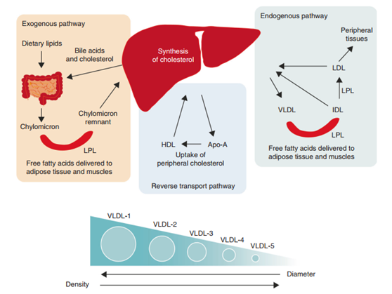 VLDL是由主分成分是甘油三酯組成的大顆粒,它們由肝臟產生,并參與內源性途徑,在血液中運輸,并將游離脂肪酸輸送到周圍組織和肌肉。在這一過程中,VLDL被還原為IDL,最后隨著脂肪酸的裂解而轉化為LDL。然而LDL的殘余部分可能轉化為泡沫細胞并形成動脈粥樣硬化斑塊,它們的大小取決于甘油三酯的含量,而合成速率取決于甘油三酯的可用性。其它利用傳統(tǒng)臨床化學方法評估血脂的研究表明,甘油三酸酯水平可能與乳腺癌風險成反比。Jobard等人的一項研究表明,脂肪酸(主要來自LDL和VLDL)與絕經后婦女的乳腺癌風險之間存在微弱的反向關聯,這與我們的研究結果一致。Bendinelli等人最近的一項研究調查了VLDL亞類和乳腺高密度之間的關系,乳腺高密度是乳腺癌的一個強風險因素。他們發(fā)現,VLDL和亞類VLDL-1和VLDL-5中的游離膽固醇、甘油三酯、膽固醇和Apo-B水平與高乳腺密度呈負相關,這也支持了我們發(fā)現VLDL亞類與乳腺癌風險之間的負相關。