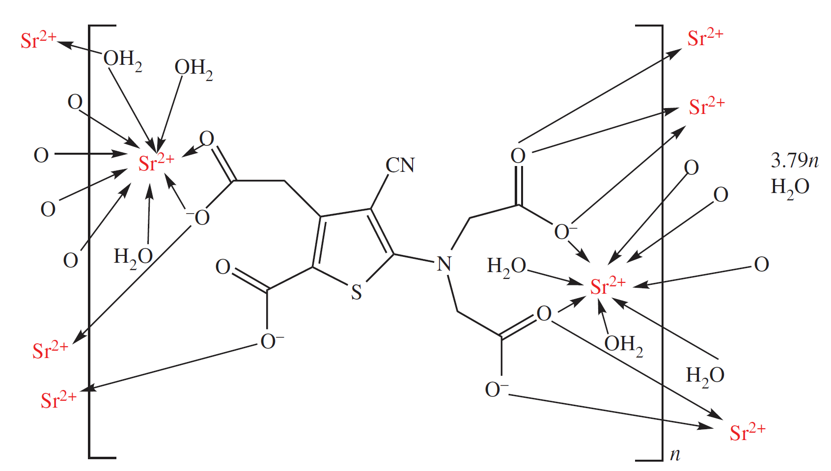 圖2. 雷奈酸鍶的高分子結構,每個單體單元含有兩個Sr2+離