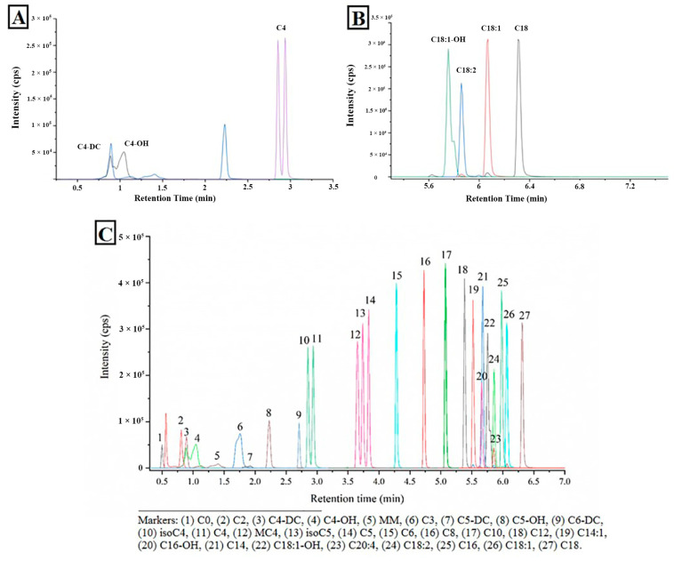 心力衰竭(HF)仍然是世界范圍內的主要心臟疾病和公共衛生負擔,目前可行的預測因素主要包括左心室射血分數(LVEF)、利鈉肽水平和紐約心臟病學會(NYHA)的心衰分級,但是這些依舊不能完全解釋和預測慢性HF患者長期不良發生的風險。代謝組學技術在臨床研究中顯現出作為診斷/預測工具和優化管理的潛力,眾所周知,心力衰竭進展過程中會發生代謝功能障礙,心肌中脂肪酸減少,脂肪酸氧化需要通過肉堿穿梭往線粒體內運輸,推測這個過程可能在HF進展中起著關鍵作用。復旦大學附屬中山醫院葛均波團隊、錢菊英團隊和復旦大學人類表型組研究院唐惠儒團隊合作,于2023年在Molecules期刊上發表題為“Quantitative Profiling of Serum Carnitines Facilitates the Etiology Diagnosis and Prognosis Prediction in Heart Failure”的研究論文,發現脂酰肉堿不僅可用于HF診斷,也可以用于非缺血性擴張型心衰(DCM-HF)的診斷,還可以用于預測不良發生。原文鏈接:https://doi.org/10.3390/molecules28145345,我公司參與了該研究中脂酰肉堿檢測方法的開發和樣品的定量檢測工作。
