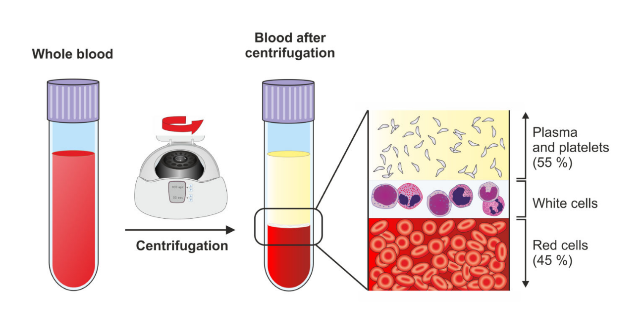 紅細胞:紅細胞成分主要來源是全血采集后經離心分離,也可通過血細胞分離機采集制備。常見紅細胞成分包括懸浮紅細胞、濃縮紅細胞、洗滌紅細胞和冰凍解凍去甘油紅細胞等。紅細胞成分也可通過去白細胞處理為去白細胞紅細胞,通過輻照處理成輻照紅細胞(《全血和成分血使用標準釋義》)。不同紅細胞成分的制備可以參考GB 18469-2012。注意,凍存后的全血樣本無法再提取紅細胞,因為全血解凍后易發生嚴重溶血(紅細胞凍融過程細胞膜漲破)。存儲的紅細胞樣品要盡可能去除水。