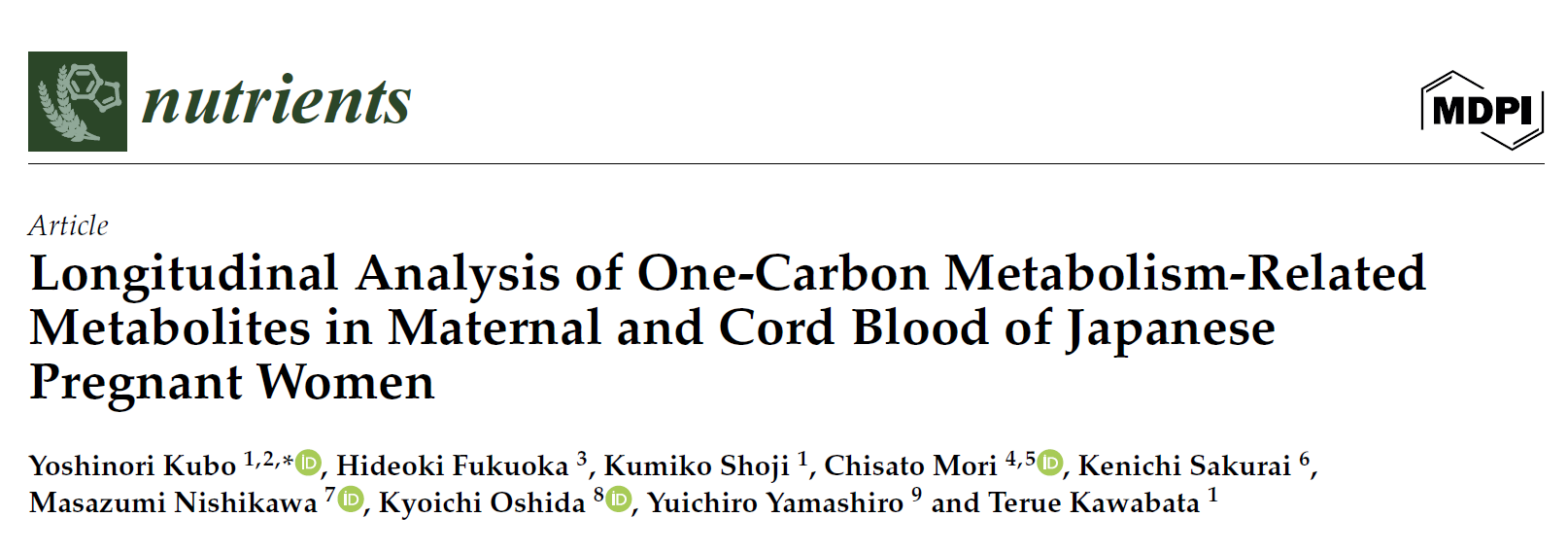 新文速遞丨Nutrients日本出生隊列一碳代謝的縱向分析