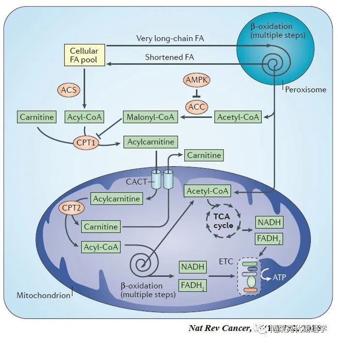 近幾年的研究發現,在腫瘤細胞中,長鏈的脂酰CoA會參與疾病的進展,ACSL4會過表達生成大量的arachidonoyl-CoA,從而消耗游離的花生四烯酸(ARA)并減少細胞的凋亡。20:4-CoA可以通過調節蛋白激酶C等信號分子促進腫瘤發生和細胞增殖,導致前列腺癌細胞中的雄激素受體重新激活,或與肝核因子等轉錄因子結合,抑制其活性促進腫瘤生長。