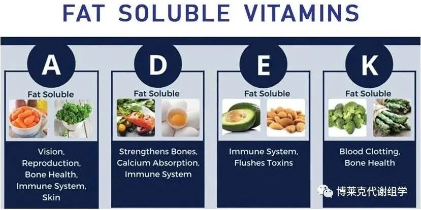 脂溶性維生素(Fat-soluble vitamins, FSVs)包括維生素A、D、E和K,是一組必需的微量營養素,它們不溶于水,溶于脂肪及非極性有機溶劑,在體內貯存在肝臟、脂肪和骨骼肌中。在天然食物中脂溶性維生素常與脂質共存,在腸內吸收時也與脂質吸收密切相關,能以擴散被動方式穿過肌肉細胞膜,經膽囊從大便排出。當脂質吸收不良時,脂溶性維生素的吸收會減少,從而引起相應的缺乏癥;長期吸收過量脂溶性維生素,也會對機體產生毒害作用。