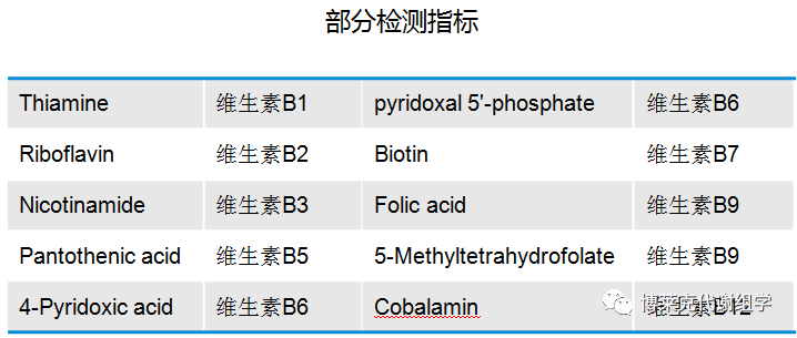 水溶性維生素是一類人和動物為維持正常生理功能而必須從食物中獲得的一類微量有機物質,在人的生長、代謝、發育過程中發揮著重要作用。水溶性維生素若長期缺乏易導致一些生理機能障礙引起的疾病。B族維生素缺乏與多種疾病的發生發展密切相關,可導致皮膚病、記憶衰退、乏力失眠、精神衰弱等。如VB1缺乏病俗稱腳氣病,VB2缺乏癥又被稱為“口腔生殖系統綜合征”,VB6缺乏可導致脂溢性皮炎,VB9缺乏可引起高同型半胱氨酸血癥、胎兒神經管畸形等。因此,監測人體內水溶性維生素的含量,有助于評價人體營養狀況、 監測疾病的診斷和治療過程,具有非常重要的臨床意義。
